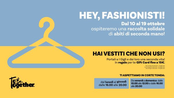 Porta i tuoi abiti usati alla postazione Humana in Galleria, e dai vita ai tuoi capi contribuendo a un progetto solidale, ricevendo in cambio Gift Card per il tuo shopping.